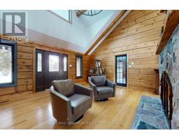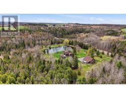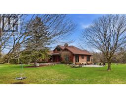 Exceptional Bungalow On Breathtaking 50 Acres Offering Over 4,000 Sqft Of Total Living Space In Uxbridge's Scenic Countryside! A grand foyer w/soaring 16ft ceilings leads into a thoughtfully designed home filled w/oversized Renewal by Andersen panoramic windows and sliding doors (2021). A striking 2-sided fieldstone fireplace anchors the living spaces. The fully upgraded 2024 modern kitchen features custom cabinetry, quartz counters & backsplash, large centre island, 2 pantries, custom tilework, new kitchen exhaust, and all new smart Energy Star SS appliances. Walk out to a custom 1,350sqft 2-tier sun deck w/a massive 445 sqft gazebo overlooking the pond, plus an interlocked fire-pit sitting area. The main floor features a serene primary suite w/walkout to pond & backyard, picture window overlooking the front garden, generous closet, and 4pc ensuite. 2nd bedroom w/large window, 4pc bath w/jacuzzi tub, and spacious mudroom w/vaulted ceilings, bay window, and convenient side-yard walkout, complete the level. Above, an approx. 800sqft loft provides versatile living space w/a 3rd bedroom&office or additional bedroom. The finished basement is perfect for entertaining, featuring a large bar area, 4th bedroom w/window & closet, and close access to a 4pc bathroom. Outdoors, enjoy a half-acre, 16ft deep natural spring-fed stocked pond w/bass & perch, ideal for swimming, fishing & winter skating, complete w/electrical rough-in for a pump. A detached 3 car garage includes a heated workshop w/plumbing & hydro, plus upper loft space. Additional features: efficient geo-thermal heating&air conditioning, 200-amp service w/copper wiring, owned hot water tank and water softener, central vacuum, new hard flooring in main floor bedrooms (2021) & new roofing over deck (2024). Located within the Oak Ridges Moraine, enjoy privacy, protected natural surroundings, abundant wildlife, and convenient access to town amenities & the GTA.Truly move-in ready rural living at its finest! (id:63381)